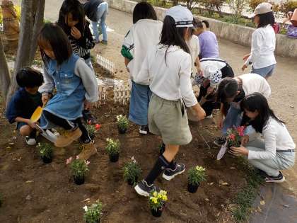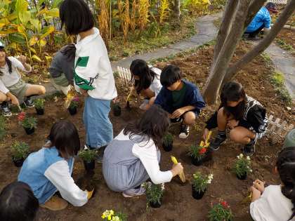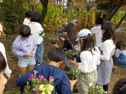 3年生もガーデンに花苗を植えました!!