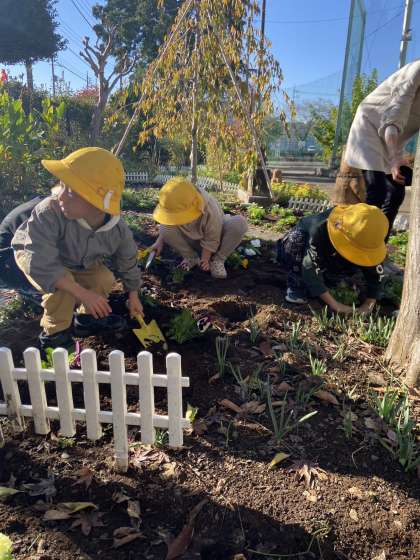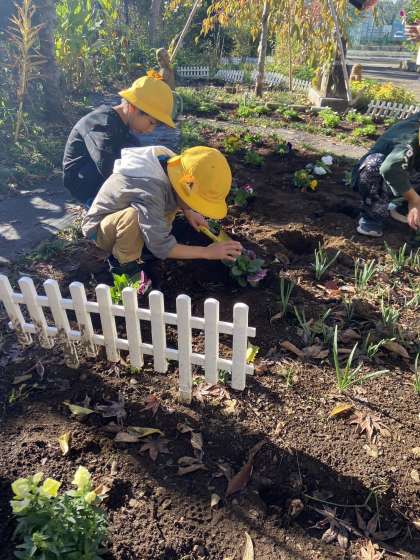くわのは1組がガーデンに花苗を植えました。