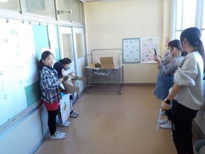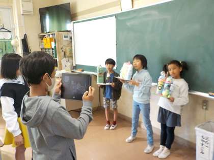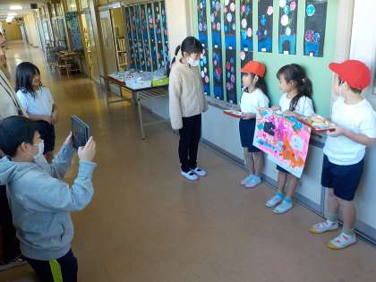 代表委員会の子供たちが、今回展示される各学年の作品の見どころを取材しました。