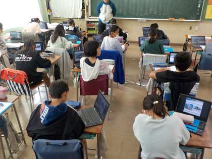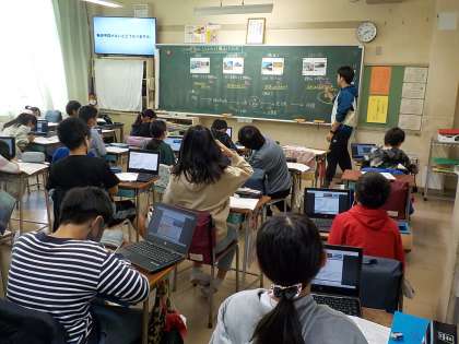 5年生の社会です。輸出入の際に利用する様々な輸送手段について調べていました。