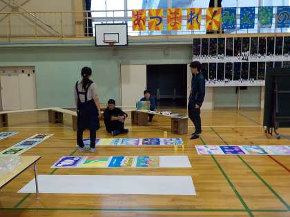 放課後、先生たちは平面作品の展示を中心に準備を進めていました。