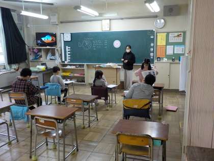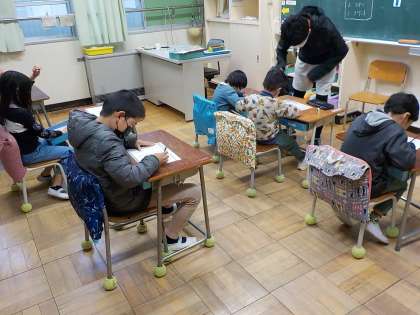 くわのは学級の算数です。時刻と時間の学習に取り組んでいました。