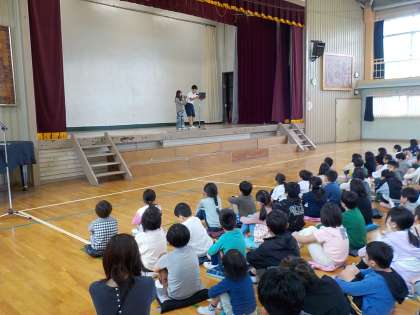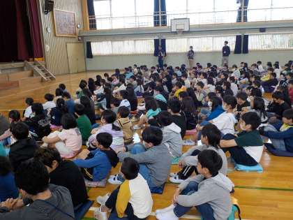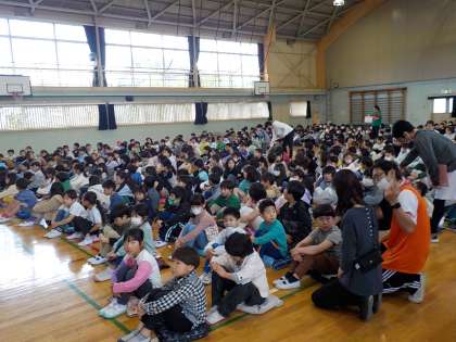 今朝は体育館で全校朝会を行いました。