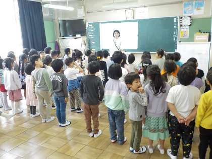 来週4月22日(月)の1年生を迎える会に向けて、1年1組2組くわのは1年生が一緒に練習に取り組みました。