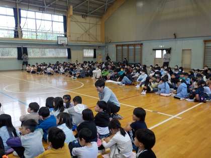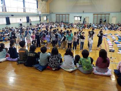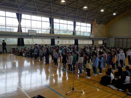 今年度になってはじめて全校児童423名がそろいました。