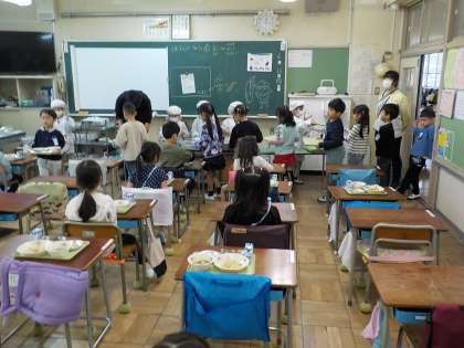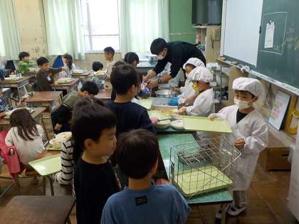 今日の給食は1年生にとってははじめての和食メニューでした。