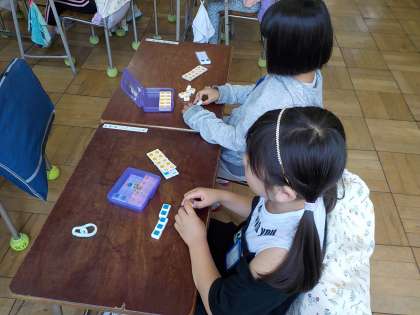 今日は「8」の分解・合成です。数図ブロックを使って考えました。