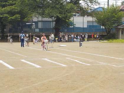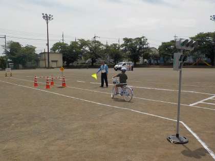 校庭での後半は実際に自転車に乗って、コースを走りました。
