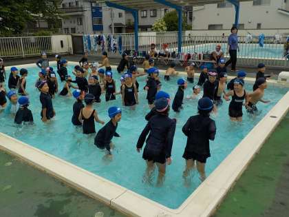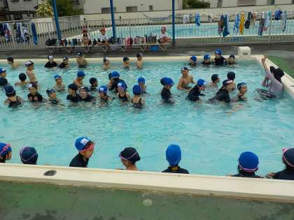 1年生が初めて水遊び(プール)の学習をしました。