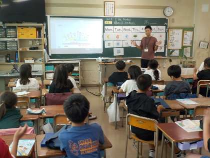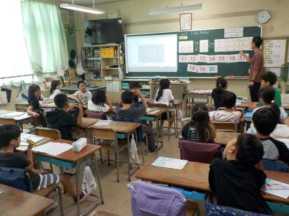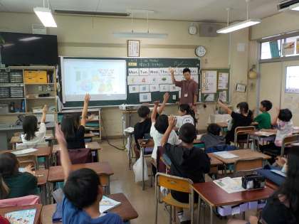 歌やゲーム、チャンツなどで、楽しみながら外国語の表現に親しんでいました。