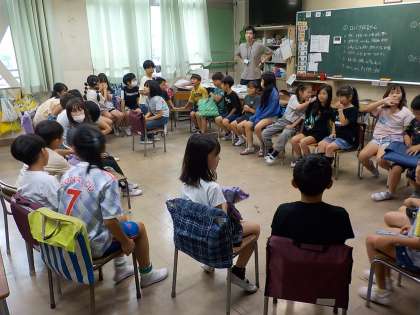 3年生は学年でもっと仲よくなろうということで、学級がまざって集会を行いました。