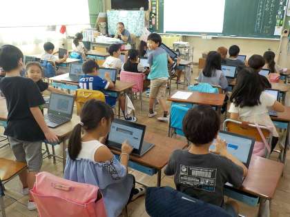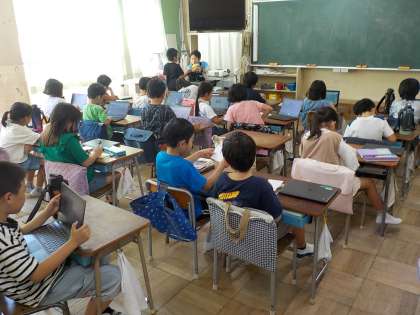 1組、2組ともにタブレットを活用した学習です。