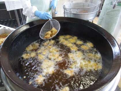 写真1:チキンカツを揚げている様子