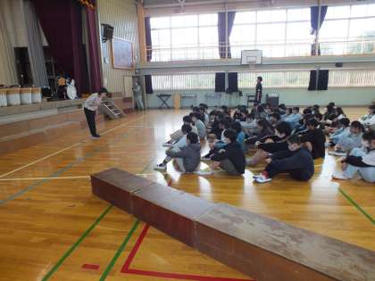 6年生が音楽会に向けて、体育館の会場準備に取り組みました。