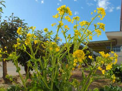 南校舎の校庭側に菜の花が咲いていました。