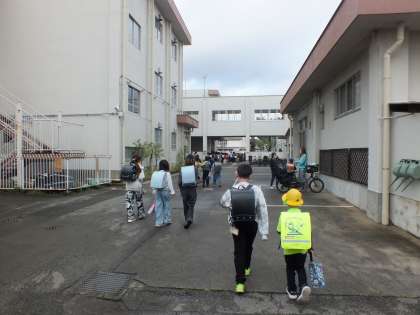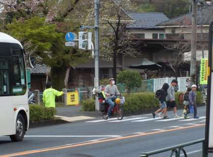 横断歩道には交通安全指導員の方が見守りをしてくださっています。