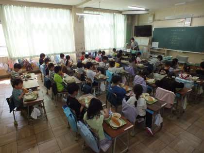 2日目の1年生の給食の様子です。配膳もスムーズです。
