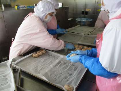 (一つずつ手で形をつくっていきます。今日は約500個つくりました)