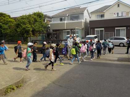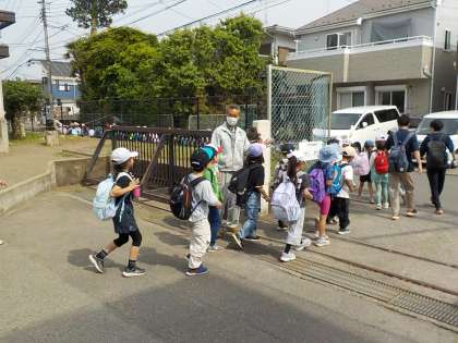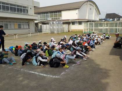 中庭に集合して、出発式してから、高尾の森自然学校に向けて出発しました。