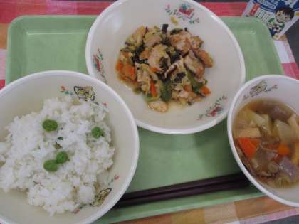 5月20日の給食【1年生:グリンピースのさやむき】