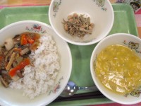 献立名ガーリックライスじゃこサラダABCスープ(カレー風味)ミニパンプキンケーキ牛乳 10月31日はハロウィンです。 ハロウィンは、もともと秋の収穫を祝い悪霊を追い払うヨーロッパのお祭りでした。 ...