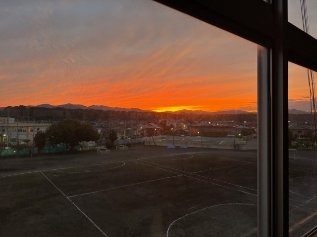 教室から、秋を感じる素敵な夕焼けが見えました。