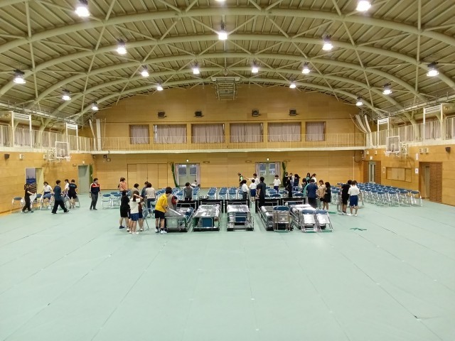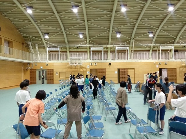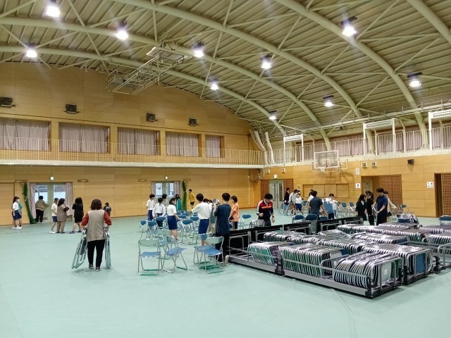 本日(10月16日)バドミントン部の皆が音楽祭の会場準備をしてくれました。床のシート敷きにパイプ椅子並べと大変な作業でしたが、気持ち良くやってくれました。