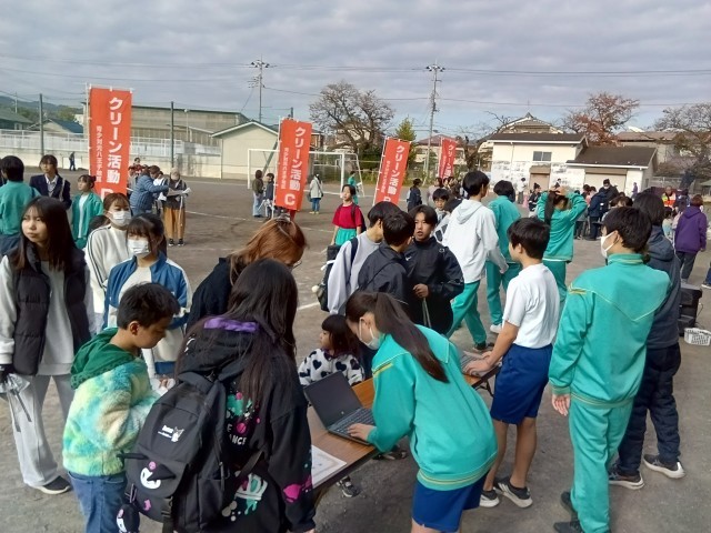 生徒会企画の「ゴミの量対決」もあってか、300名を超える児童・生徒そして保護者の方々の参加者がありました。