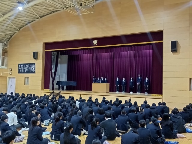 先日(12月1日)、12月の生徒会朝礼を行いました。各委員会から11月の反省と12月の活動について発表がありました。