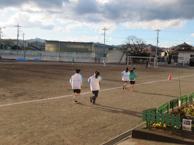 陸上部は外周コースを使い、寒さに負けず一人一人が自分のペースで走り込みを行っていました。