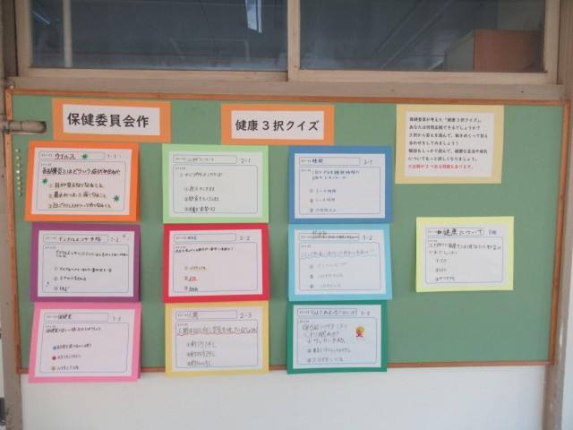 これは、保健委員が考えた健康に関するクイズの一つです。