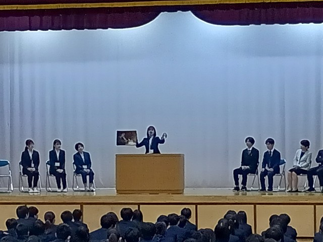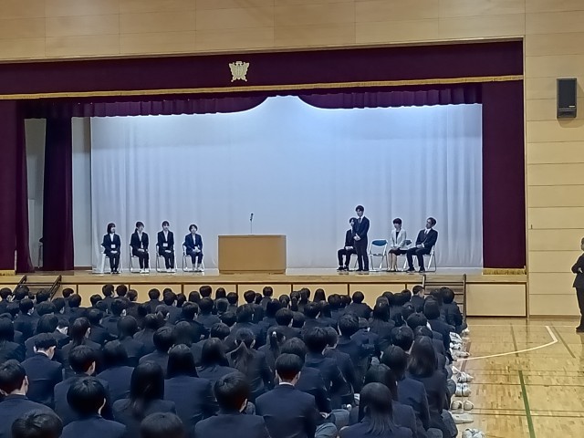 先生方の個性あふれる自己紹介に、生徒も教職員も聞き入っていました。