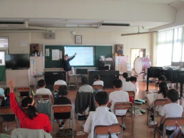 「細かいリズムを押さえて歌おう」というめあてで、「校歌」「涙そうそう」「運動会の歌」「学習発表会の歌」を歌いました。しっかり声を出して、元気に歌うことができました。今週末にある運動会では、今日歌った「ゴーゴーゴー(運動会の歌)」を披露します。ご期待ください。