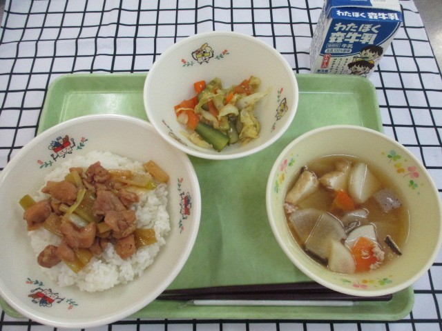 今日は運動会応援こんだてということで、子どもたちに人気のやきとり丼や