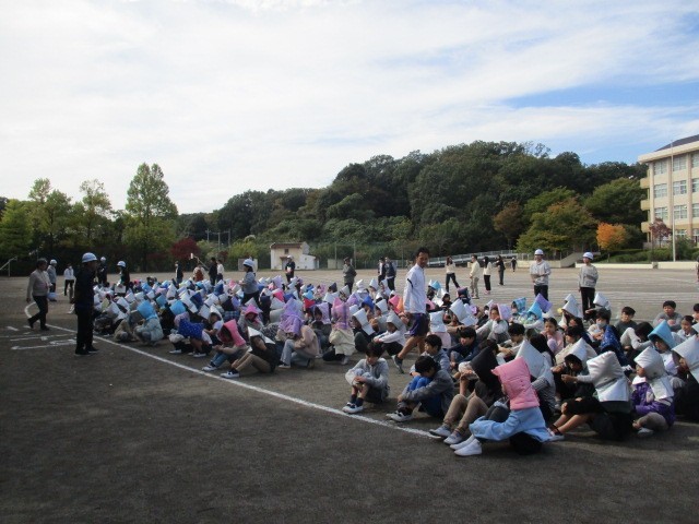 今月の避難訓練は、職員室からの出火を想定して行われました。放送をよく聞き、どこで火事があり、どの階段は使えないのかしっかり理解しながら避難することができました。避難の仕方について、体をかがめて、口をハンカチで押さえ、「お(おさない)・か(かけない)・し(しゃべらない)・も(もどらない)」の約束を確認しました。