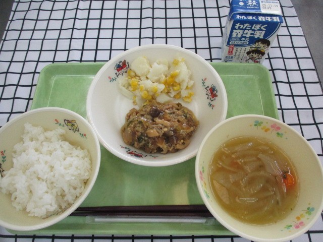 きのこが苦手な子も今日はハンバーグと一緒に頑張って食べていました!