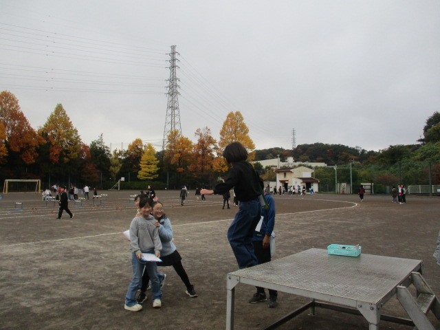 写真は、朝礼台の上からジャンプする運動です。全部で13の運動が設定されています。子供たちは、学習カードももっており、できると担当の先生かハンコをもらえます。