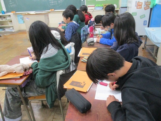 「言葉のおくりもの」という読み物教材を使って、「友情」について考えました。登場人物を通して、お話の場面場面での気持ちや思いを想像することを通して考えました。全員が真剣に考え、発言し、それに対してまた意見を言うことで、考えを深めることができました。