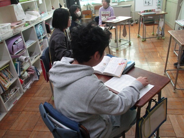 国語辞典を使って、言葉の意味を調べ、発表することから授業がスタートしました。そして今日の授業のめあて「話をよく聞いて、誰のことかを当てよう」ということで、先生から4つのヒントを聞き、それが誰なのかを考えました。正解するためには、ヒントをよく聞く必要があります。先生の話を「聞き洩らさないぞ」という姿がたくさん見られました。
