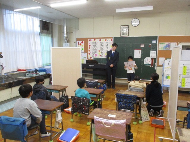 今日の学習は、「ていねいな言葉を使ってみよう」でした。友達の発表を聞き、「~ですか?」とていねいな言葉で質問をすることができました。発表の中でも「~です」「~ます」をしっかりと使って話し、とても立派でした。