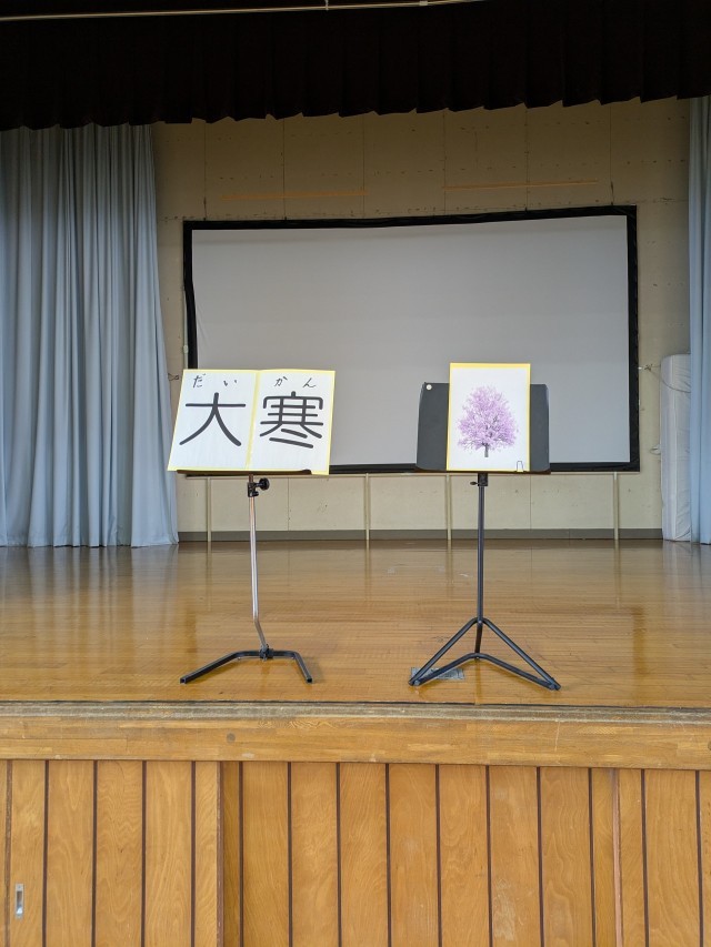 今週は週末に学校公開があります。どうぞよろしくお願いします。さて今日の全校朝会では、「大寒」を取り上げました。大寒とは、1年で一番寒い時期の季節を表す言葉です。桜の花は、寒くないと花が咲かなかったり、咲いても遅れたりします。冬の厳しい寒さに耐えながら、花を咲かせる力を蓄えているとの話をしました。