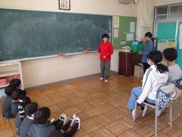 先週に引き続き、今週は「なかよし幼稚園」の年長さんを学校にお呼びして、宮上小学校について学校のきまりや授業・学習体験、体育?(アスレチック)体験など、小グループに分かれて、宮上小学校について学びました。5年生のお兄さん、お姉さんの言うことをしっかり聞いて、楽しく活動することができました。