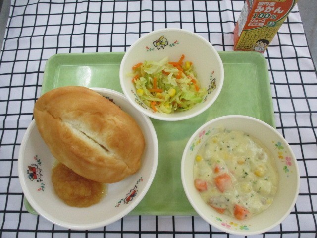 子どもたちは、パンにのせたり、コーンシチューにつけたりしながら、