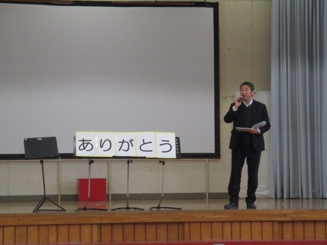 今年度も最後の全校朝会になりました。今回は、谷川俊太郎さんの「ありがとう」の詩を紹介しました。普段、当たり前と思っていることが、実は当たり前ではなく、誰かのお陰であることを子供たちに訴えかけました。「ありがとう」は魔法の言葉です。言った人も言われた人も心がポカポカします。「卒業式」や「修了式」に向けて、宮上小学校に「ありがとう」の言葉がが溢れるといいなと思います。