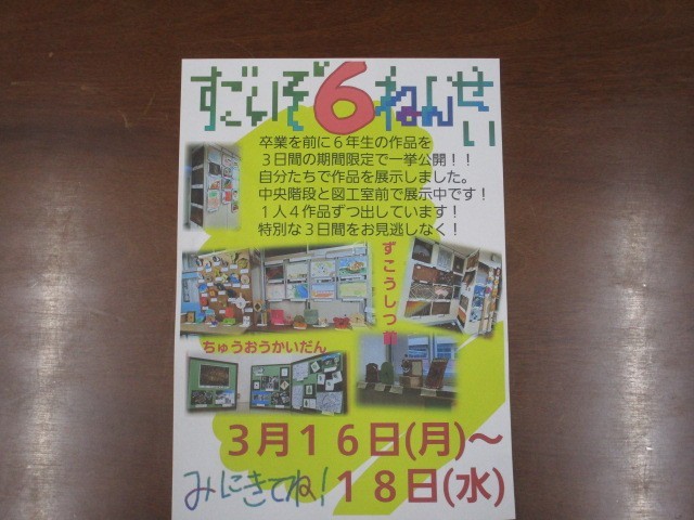 すごいぞ6年生(プチ図工展覧会)16日~18日まで