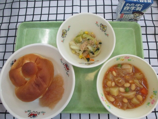 今日はミルクパンにジャムをつけたり、ポークビーンズをつけたり、工夫しながら食べていました!