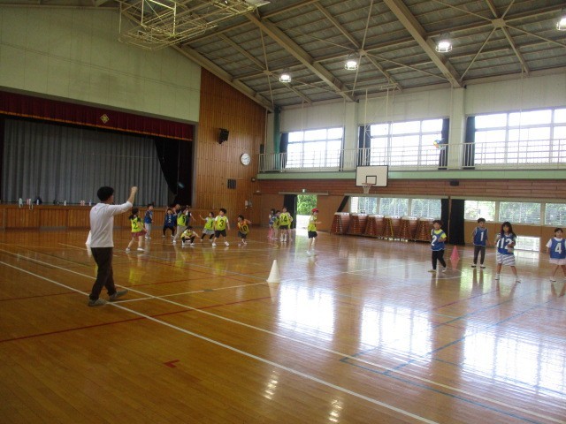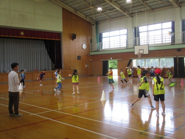 体育館から子供たちの明るい声が聞こえたので行ってみると、フリスビードッジボールをしているところでした。前からだけでなく、横からもフリスビーが飛んできます。上手く避けたり、キャッチしたりしてプレーを楽しんでいました。