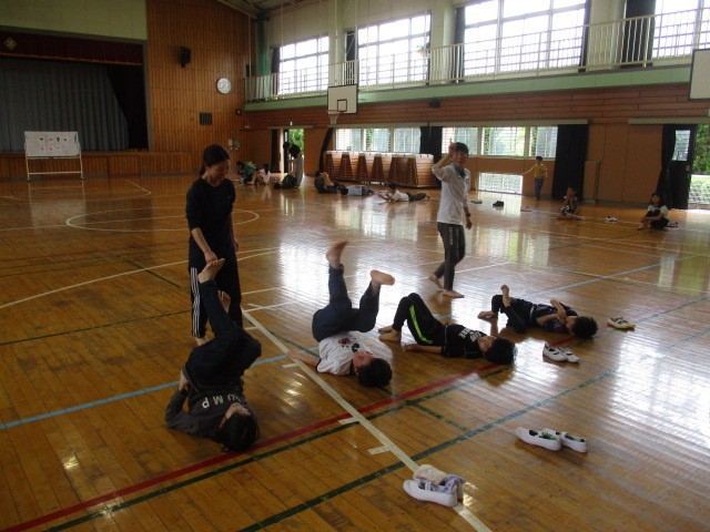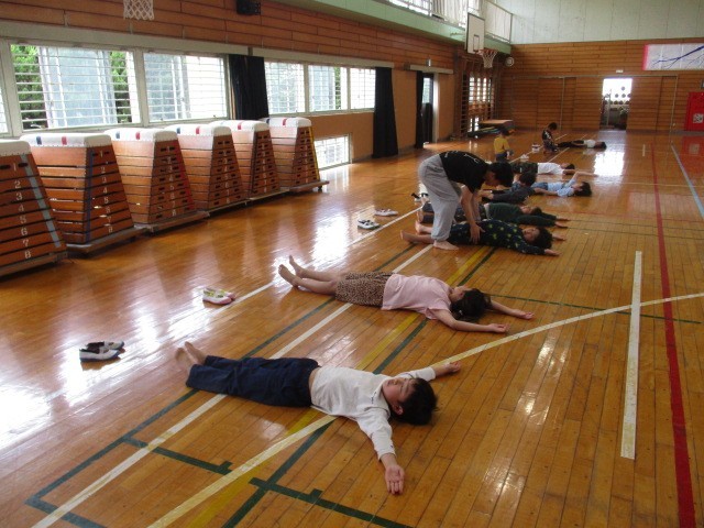 5時間目に体育館で、こすもす学級全クラス合同で「リトミック」をしました。ピアノの音楽を感じ取り、リズムに合わせて体を動かしました。「金魚の動き」「自転車をこぐ動き」「バレリーナ?の動き」等など・・・・難しい動きにも果敢に挑戦しました。