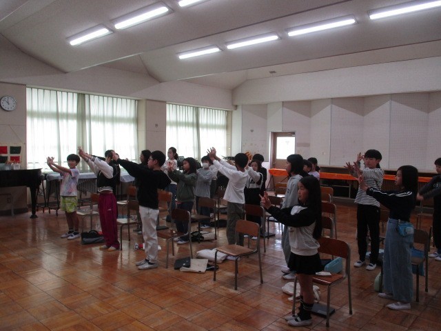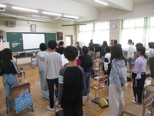 廊下を歩いていると明るい歌声が音楽室から聞こえてきました。ちょうど校歌を歌っているところでした。続いて「ビリーブ」を手話付きで歌いました。