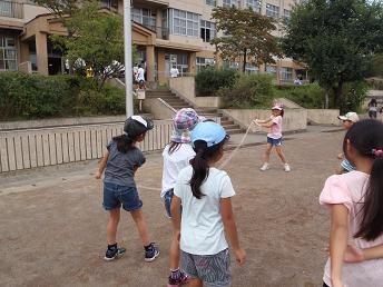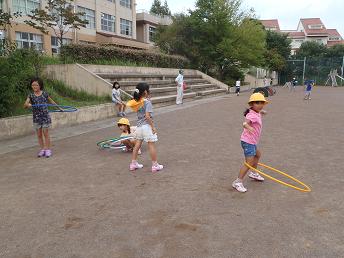 校庭では、思い思いの遊び道具で子どもたちは元気に遊んでいました。